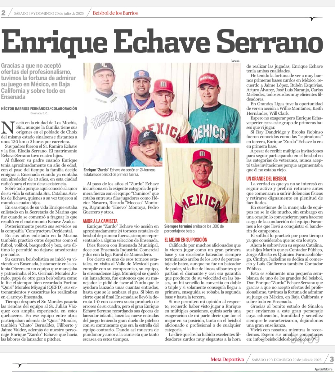 ESTRELLAS DEL BÉISBOL ENRIQUE ECHAVE SERRANO Por Héctor Barrios Fernández     Nació en la ciudad de Los Mochis, Sin., aunque la familia tiene sus orígenes en el poblado de…